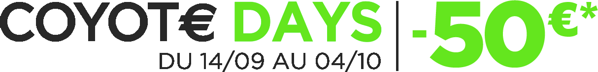 Offre valable en Belgique, au Luxembourg et aux Pays-Bas, réservée aux clients particuliers, du 14/09 au 04/10/2021 inclus dans la limite des stocks disponibles, à l’exception des packs. Remise immédiate de 50 euros TTC pour l’achat d’un boitier Coyote Mini, Coyote Up ou Nav+ et la souscription simultanée d’un abonnement sur www.coyotesystems.be, www.coyotesystems.lu et www.coyotesystems.nl, en point de vente Coyote ou au service Client. Offre non cumulable avec toute autre offre en cours, soumise à l’acceptation des Conditions Générales d’Utilisation COYOTE. L’offre est organisée par COYOTE SYSTEM, 25 Quai Gallieni – 92150 Suresnes, RCS 518 905 476. Conformément au règlement général sur la protection des données du 27 avril 2016, vous disposez d’un droit d’accès, de modification, de rectification et de suppression des données vous concernant, en adressant une demande écrite à gdpr@moncoyote.com.